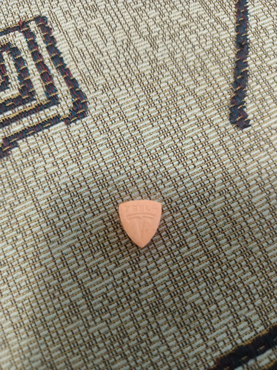 Ярко-красная таблетка, чёткий пресс, без крошения. Логотип отчётливый, без смазанности. Запах слабый, вкус горьковатый.